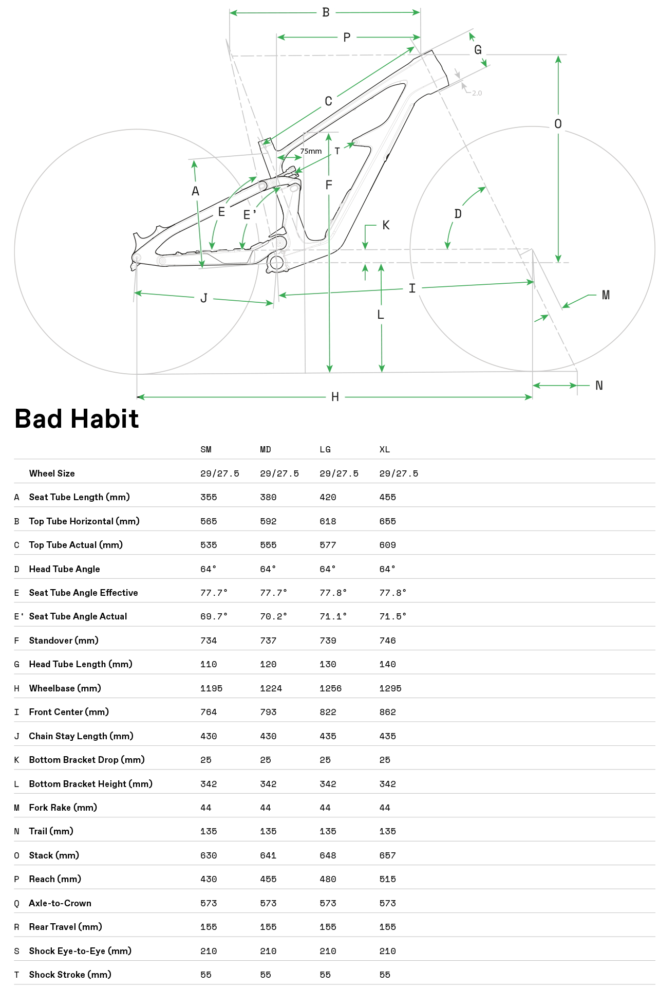 | Rám | Bad Habit, high-strength carbon construction, 155mm travel, StashPort, Proportional Response Suspension and Geo, 55mm chainline, ISCG05, 73mm BSA MTB Wide BB, 1.5" headtube (compatible with thru headset or external cable routing and Acros angle adjust headsets), DirectLine tube-in-tube cable routing, UDH hanger, 200mm native post mount brake | |